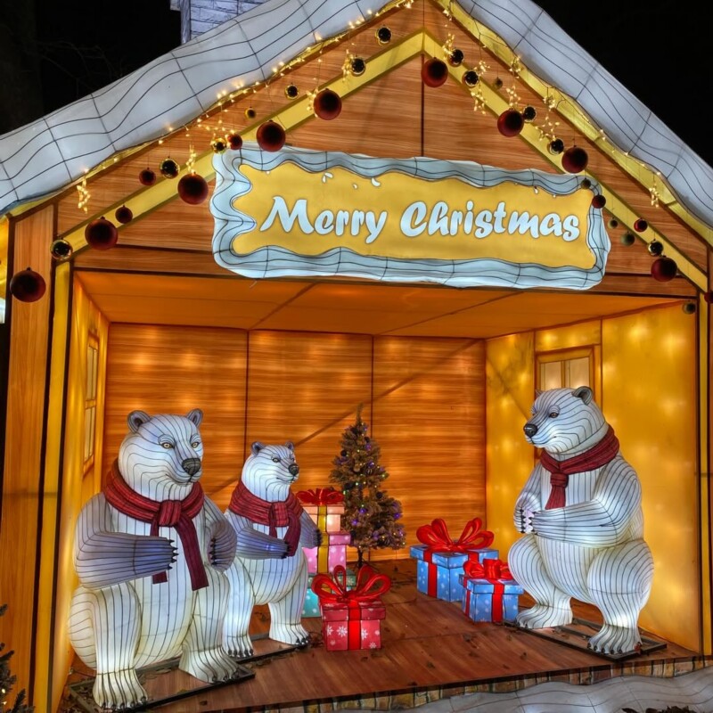 彩灯节以 “奇幻光影,梦幻之旅” 为核心主题,沿园区动线规划三大主题展区,构建从 “自然奇幻生命” 到 “跨文化想象”,最终抵达 “经典圣诞村” 的完整叙事体验。每个展区均兼具视觉冲击力与故事连贯性,打造多个网红打卡点。