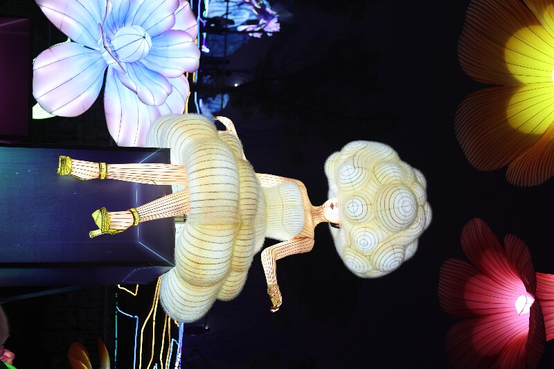 《光影芭莎》是本届灯会极具先锋性的跨界标杆作品。灯彩集团以 “传统非遗 + 顶级时尚 IP” 的创新模式,打破大众对彩灯的固有认知,将时尚 T 台搬进灯会现场,以极简高级的视觉语言重构彩灯时尚表达。作品既坚守自贡彩灯丝扎内透的核心技艺,又创新采用新型透光材料与数控光影技术,实现色彩精准渐变与光影动态切换,推动非遗技艺突破圈层触达年轻群体,为非遗年轻化传播提供了全新范本。