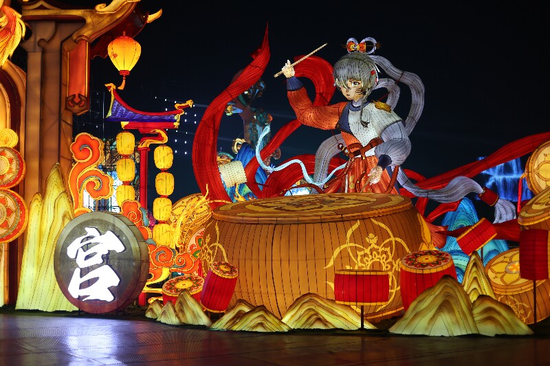 作为深耕彩灯行业、传承非遗技艺的领军企业,自贡灯彩文化产业集团深度参与2026年第32届自贡国际恐龙灯会,凭借精湛的工艺与创新的设计,精心打造了《年年招财》《乐创国潮》两组特色灯组,成为本届灯会中极具辨识度与吸引力的亮点。本次灯会于1月23日在自贡·中华彩灯大世界正式亮灯,以“灯绘华夏 筑梦未来”为主题,立足650亩彩灯园区,打造十大主题板块、11组超大型灯组及200余组中小型非遗彩灯,是一场贯通传统与未来、兼具文化深度与科技质感的光影盛宴,也成为今年春节期间全国最具影响力的文旅IP之一,吸引着八方宾客奔赴盐都,共赏灯韵、共庆新春。其中,集团打造的《年年招财》灯组搭载语音交互技术,萌趣年兽可与游客实时对话,打破传统观灯模式,兼具吉祥寓意与互动体验;《乐创国潮》灯组则将国潮元素与自贡非遗彩灯工艺深度融合,以年轻化、潮流化的设计,贴合当代审美,深受年轻游客喜爱。集团工匠坚守“万物皆可成灯”的匠心,在两组灯组的创作中,既延续了丝架造型、分色裱糊等自贡彩灯传统非遗工艺,又融入现代智能灯光技术,同时兼顾环保理念与文化内涵,充分彰显了集团在非遗传承与创新领域的深厚实力,也为整个自贡国际恐龙灯会增添了独特的色彩与活力。