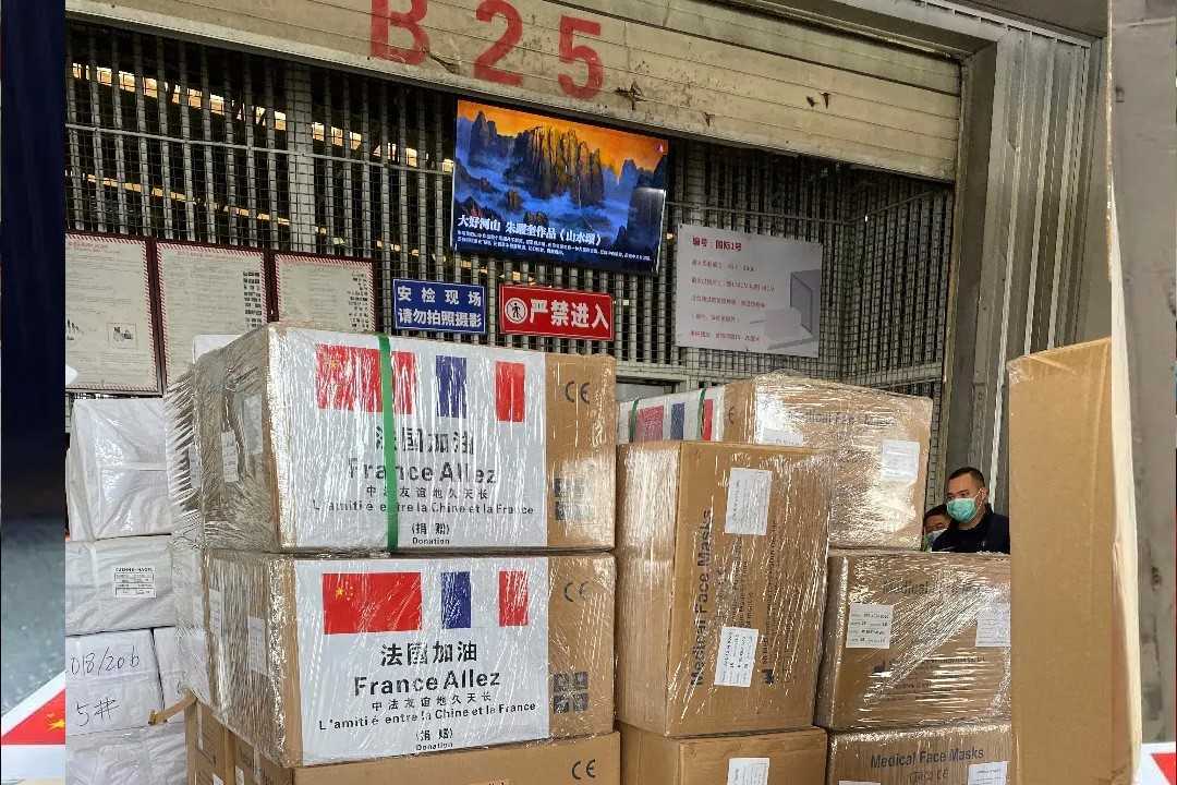 2020年4月2日,邮件外包装印着中法两国国旗、“法国加油”、“中法友谊地久天长”等字样的5万只医用口罩,经成都双流机场起运法国盖亚克市。这是继自贡市政府向法国盖亚克市政府捐赠2万只口罩之后,由自贡灯彩集团通过民间渠道向法国盖亚克市人民捐赠的又一批抗疫物资。